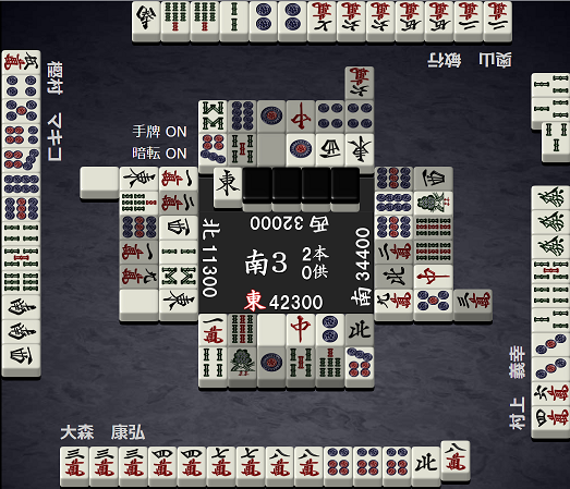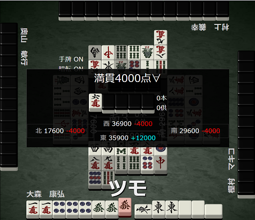 大森から村上へ7700は8300の放銃。大きな大きなアガリとなった。