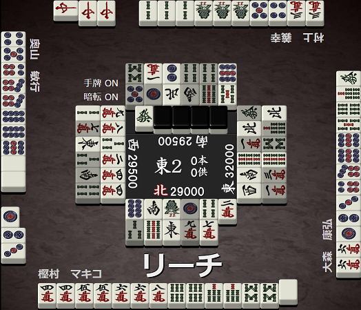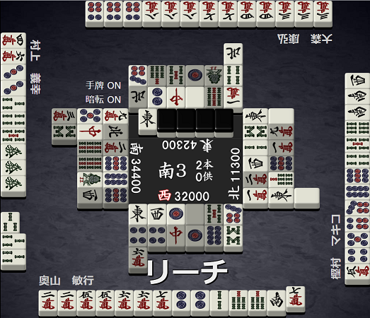 単騎でのリーチ。この時奥山が明らかなホンイツ模様で