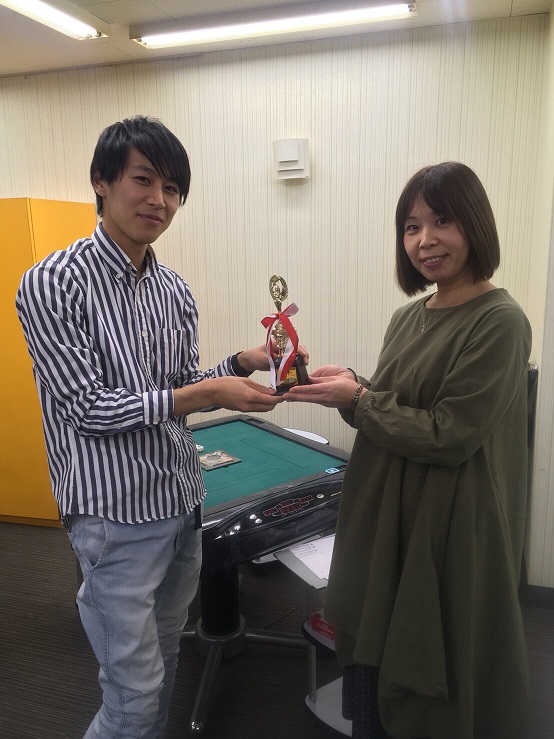 親の大森に押されてちょっと嫌だなと思ったものの二巡後にツモアガリ。この跳満がこの半荘の決め手となり、奥山がトップ。