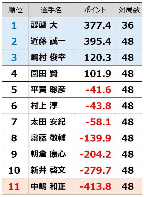 今年のA1リーグでは、ポイントがないときの打ち方が反省点かな。ターゲットとの差と残り回数を考慮して選択を決めていくんだよね。例えば仕掛けの判断で微妙なやつとかだとターゲットが上家なら鳴くけど下家なら鳴かないとか。でも、今年はそういうのをちょっと意識しすぎたかなって。