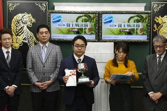 「実はAリーグに上がってから、公式対局で近藤誠一さんに勝ったことが一度もなかった。今回も最後に追い詰められて本当に強いなと感じたが、なんとか勝つことができました。前回優勝した後は、リーグ戦も1位で突破して決定戦に進出できた。今年も發王位として、これに留まらず活躍できるように頑張ります」