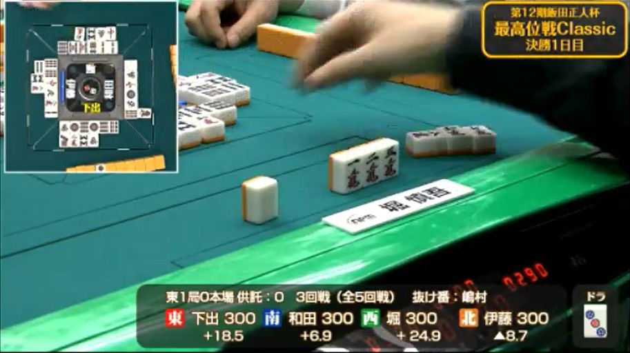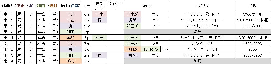 ●1回戦 起家から下出→堀→和田→嶋村(抜け:伊藤)