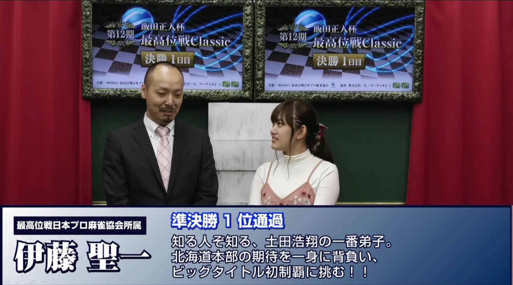 2015年に最高位戦に新設された最高位戦北海道本部の第1期生。新人王を2年連続で取っている北海道本部であるが、Classic決勝に北海道選手が進んだのは今回が初めて。伊藤は、札幌市内で麻雀教室の講師を15年務め、2015年に「麻雀スクール アエル」を開業。最高位戦に入会して3年。北海道で応援する方々の期待を背に、Classic決勝にやってきた。