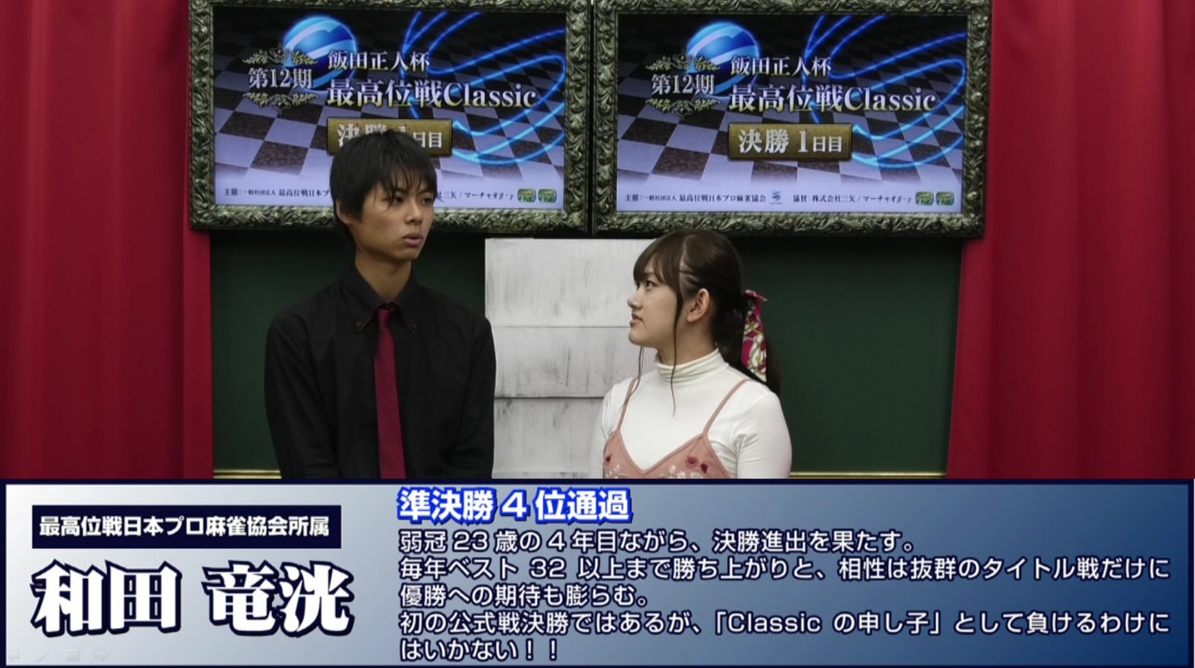 プロ4年目。平成6年生まれの23歳。先に紹介した嶋村とはなんと44歳差。ちなみに和田が生まれた平成6年というと、プレイステーション、セガサターンが発売になった年。これは若い。とはいえ和田は、Classicは毎年ベスト32以上に勝ちあがるという実力派。麻雀界の藤井聡太となれるか、期待が高まる。