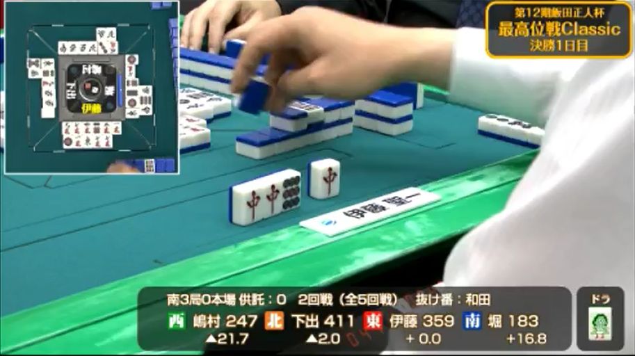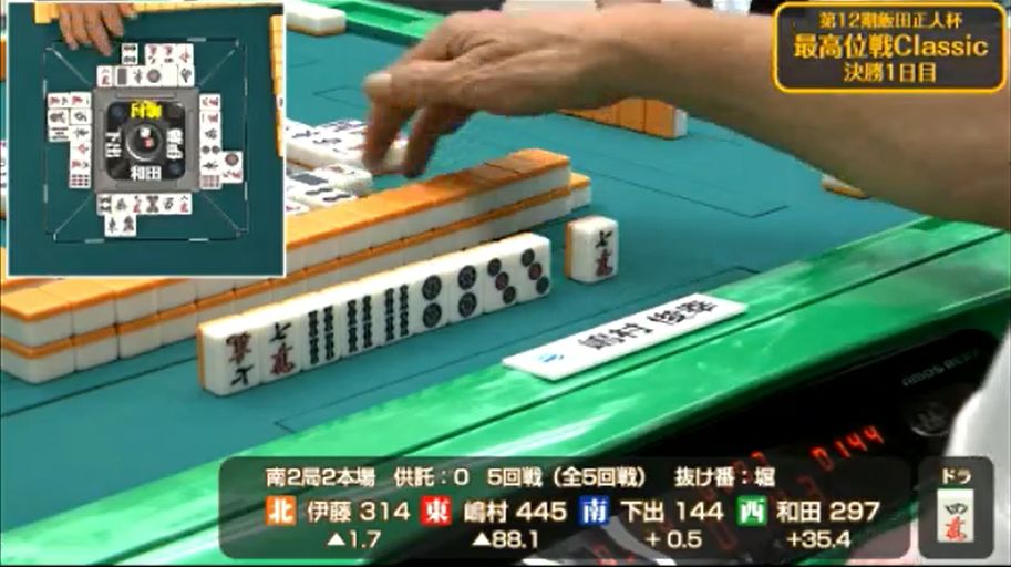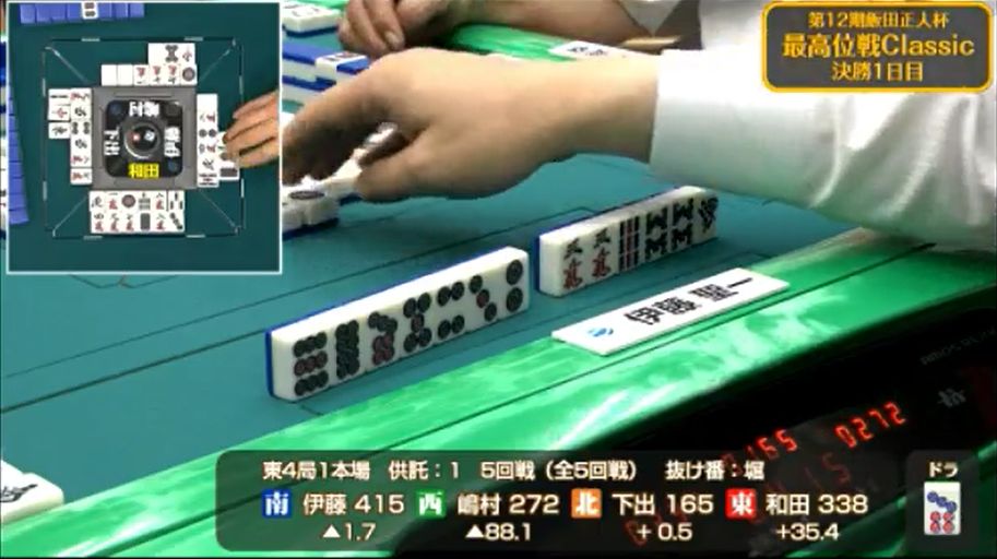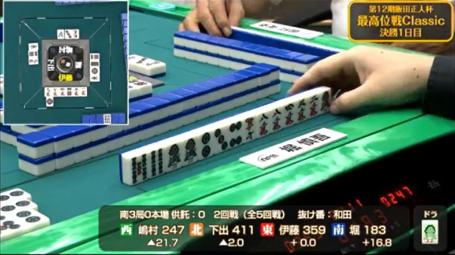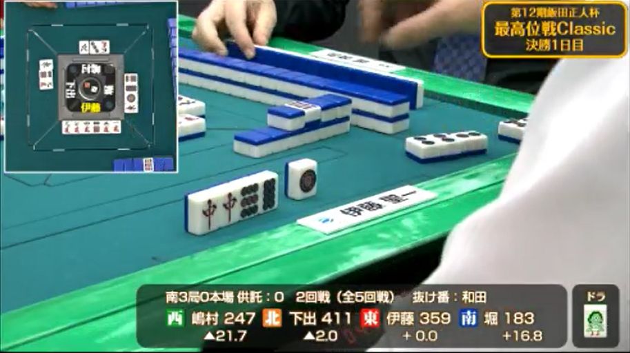 嶋村の上家である伊藤、一気通貫のイーシャンテンとなり打