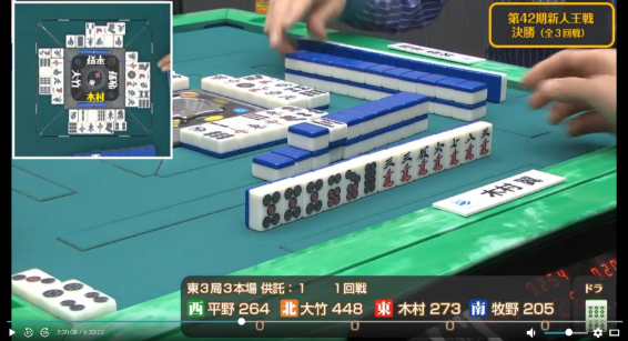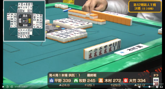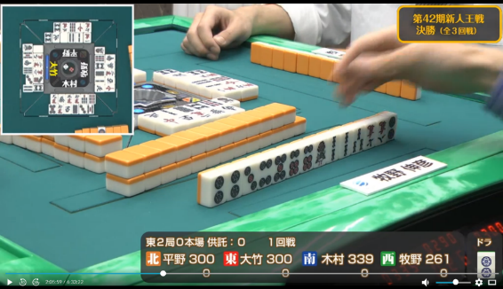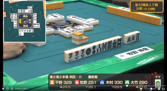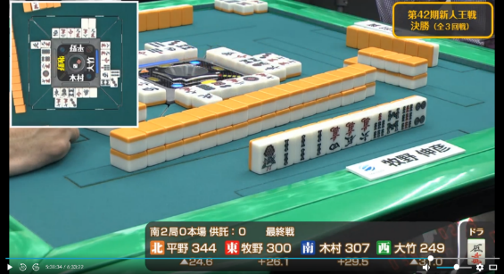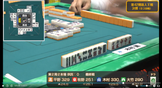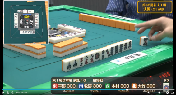 これにより勢いを得た木村は次局も大竹から5800は7000を和了し一気にトップ目に立つ。