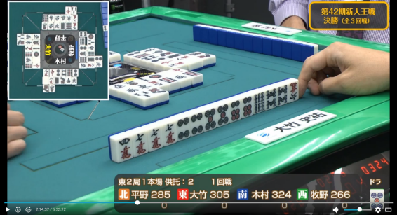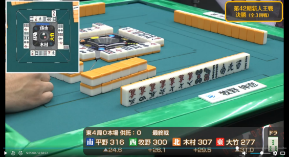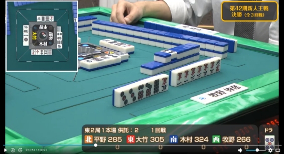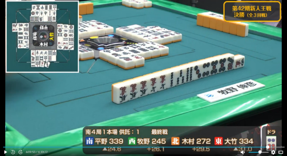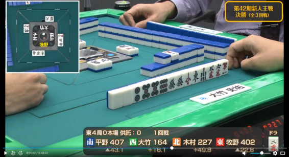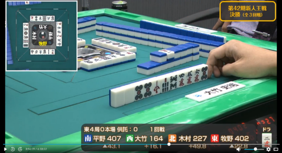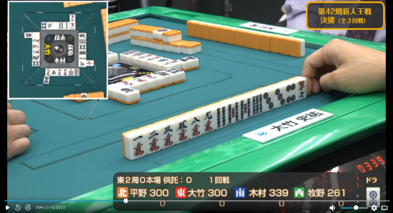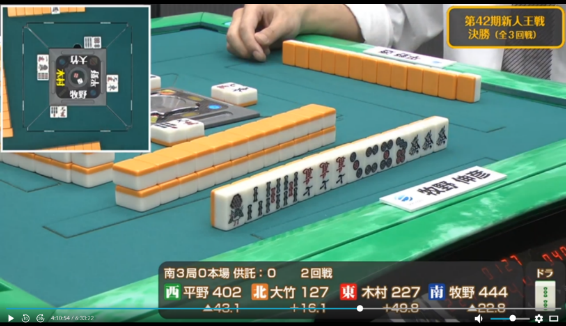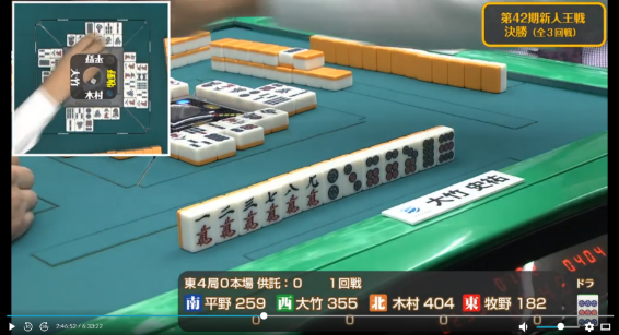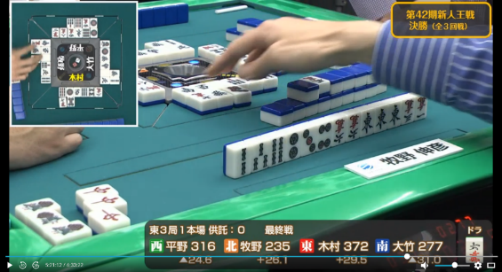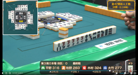 も引かされ完全に撤退した牧野に待っていたのは大竹からのツモ発声。