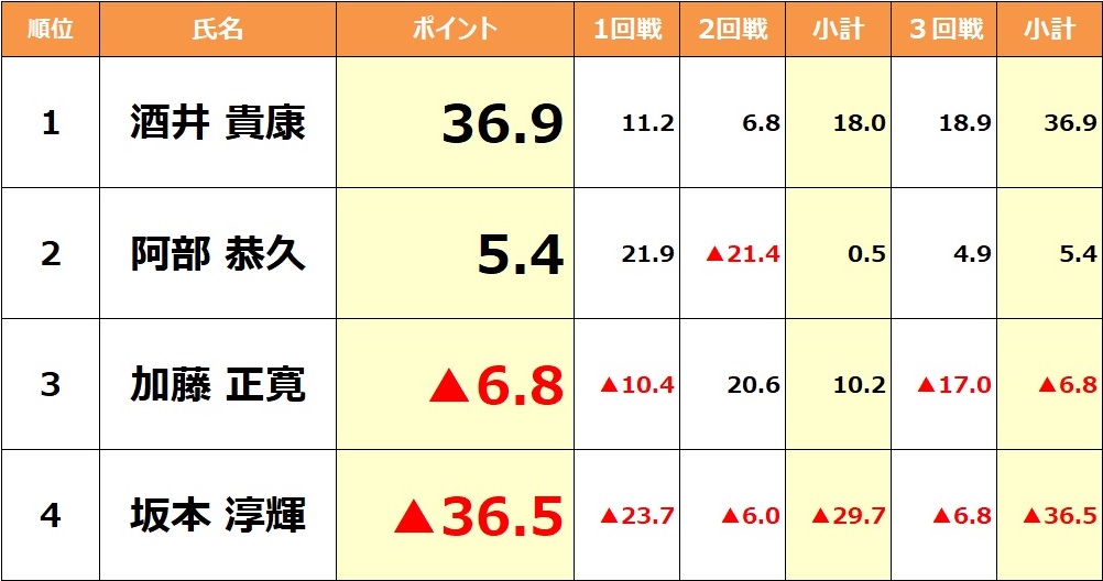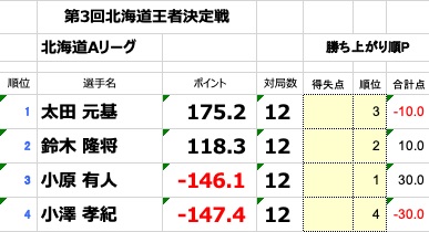 Aリーグ上位4名は第4回北海道王者決定戦進出(全3節)