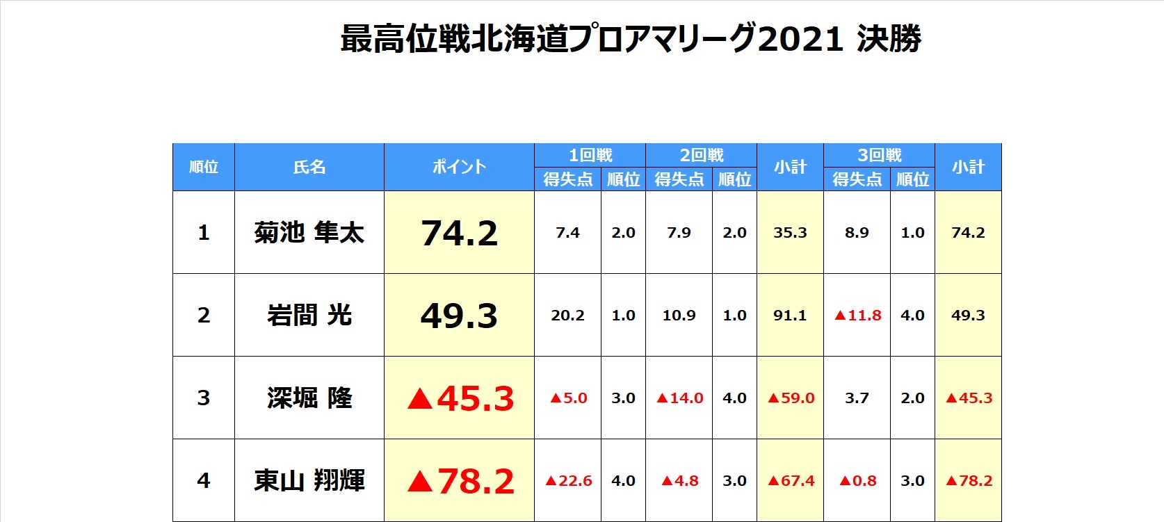第47期後期北海道C2リーグ成績/全5節