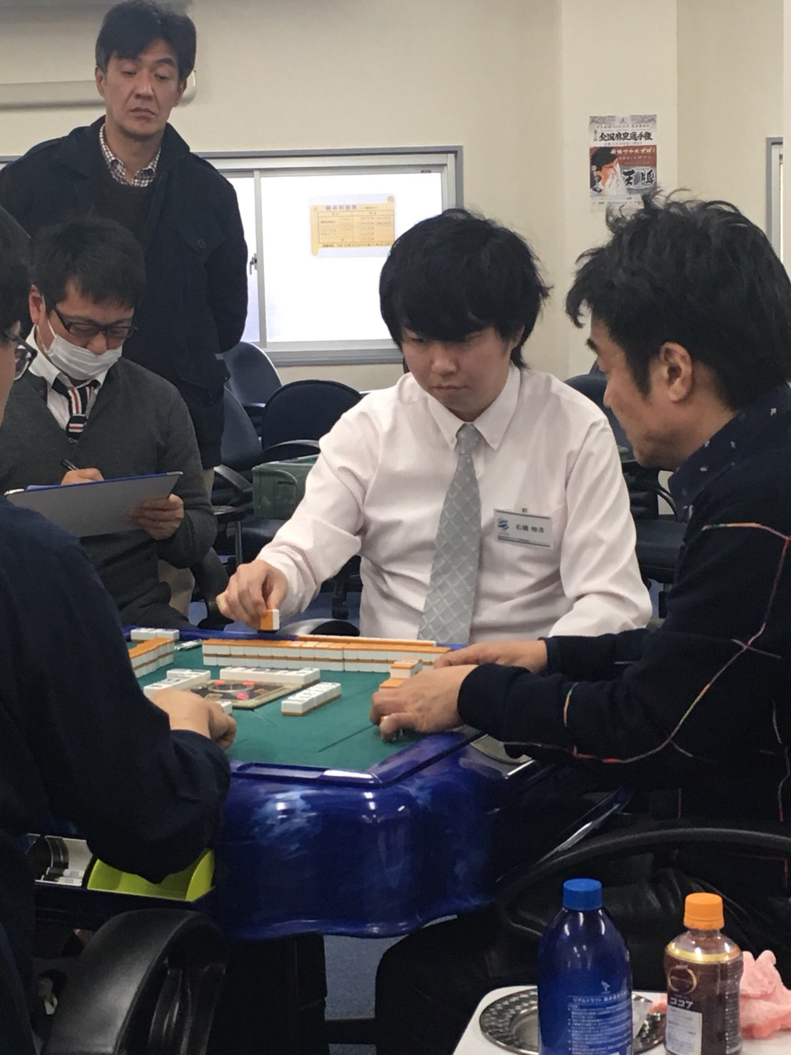 決勝進出4名の対局前(写真左から 桑原俊之さん、石橋伸洋選手、石川由人さん、尾澤大河さん)