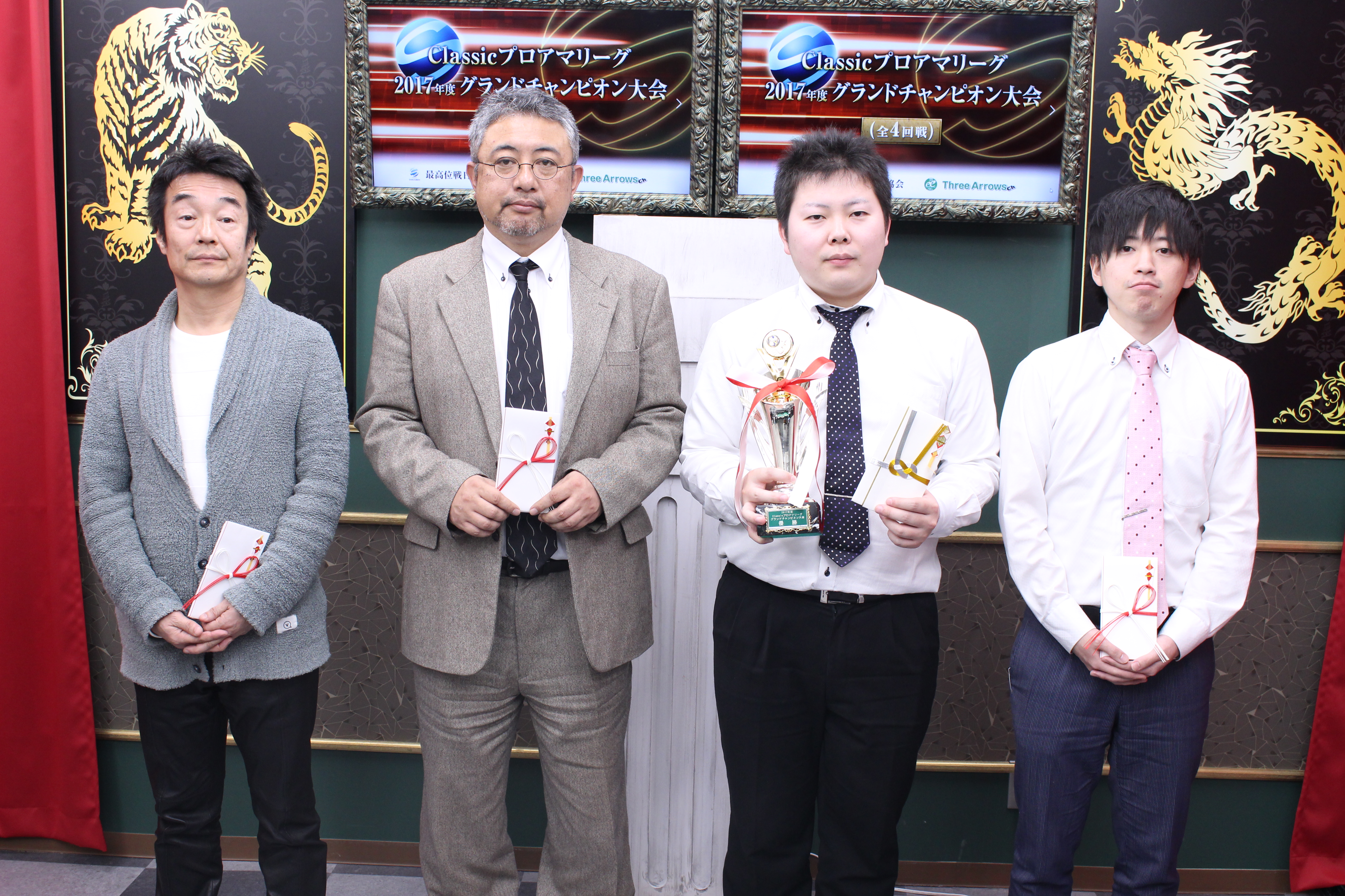 各本部・支部で開催された「Classicプロアマリーグ2017」の優勝者4名による「Classicプロアマ・グランドチャンピオン大会2017」が、3月3日(土)都内大塚の「麻雀スタジオ」で開催されました。