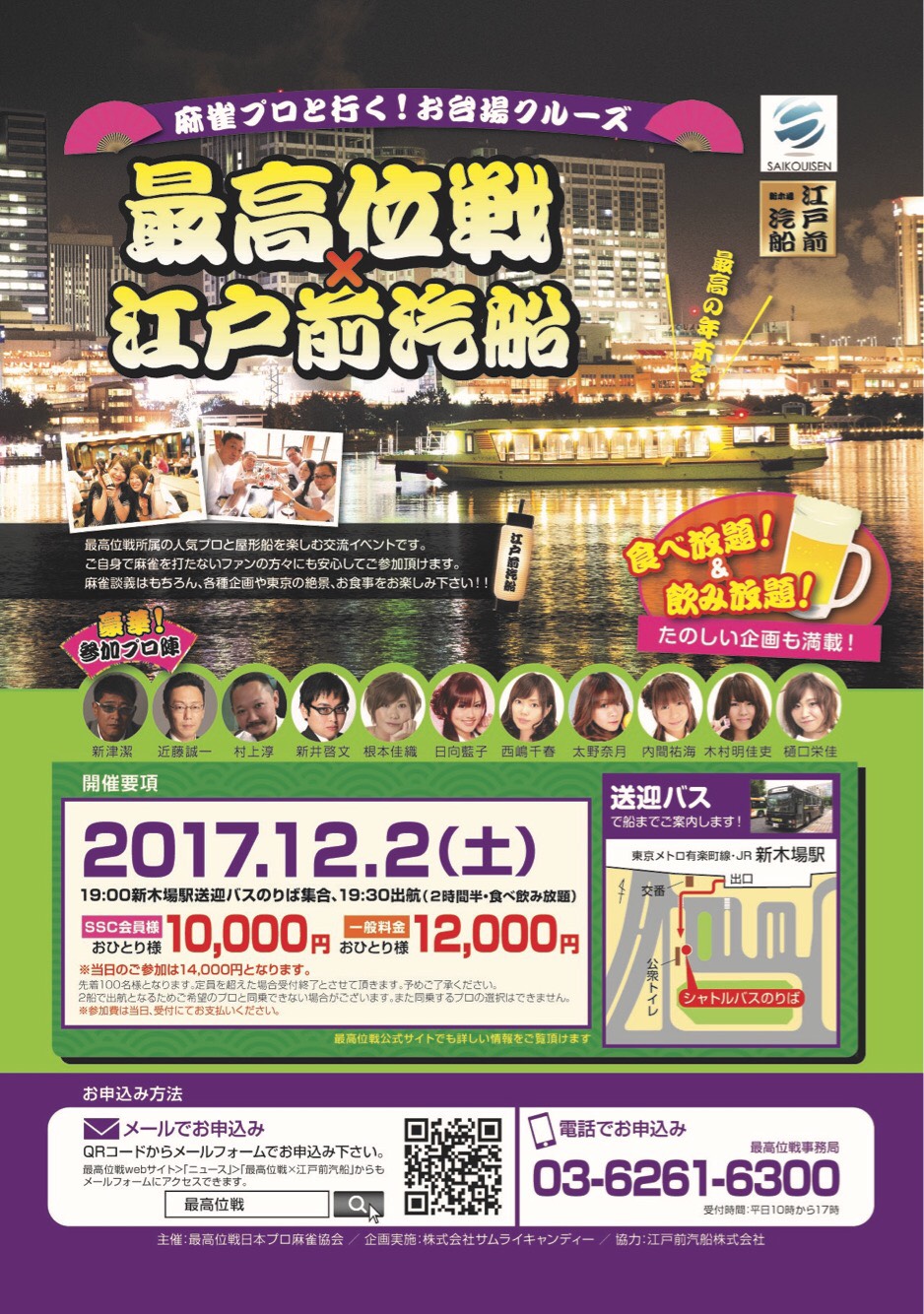 新木場から東京湾を遊覧する屋形船「江戸前汽船」の御協力の下、最高位戦所属の人気プロと交流するこのイベント。