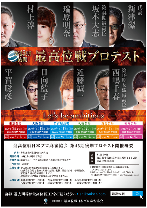 ※ お問い合わせについても、最高位戦事務局へお願いします。
